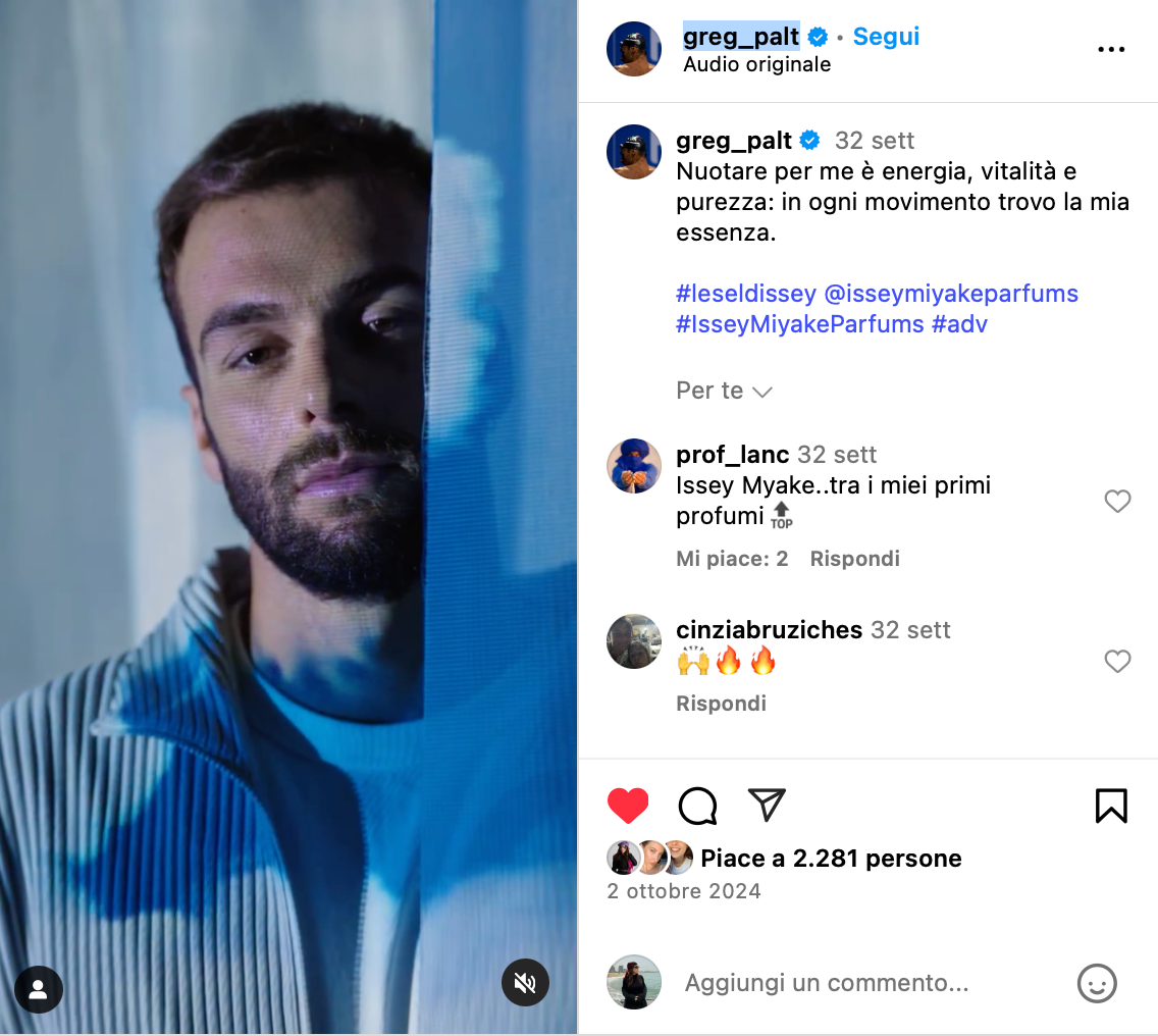 For the launch of Del D’Issey, Issey Miyake’s new fragrance, we created sensorial content featuring Olympic champion Gregorio Paltrinieri. The visuals explored the purity and power of water, blending athletic grace with the essence of the scent.