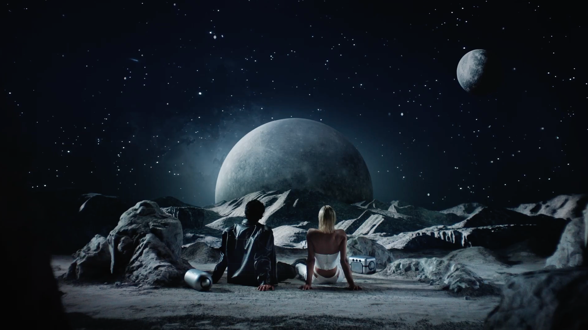 At the core of the project, we designed and produced a lunar scenography in studio, translating the Hyperverse concept into a tangible,